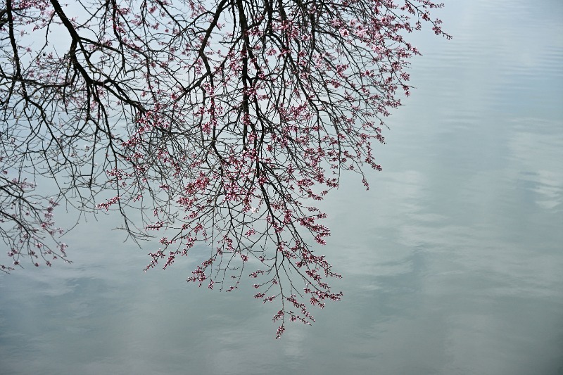 물 위에 비친 나뭇가지와 벚꽃은 실제와 경계가 흐려지며 또 하나의 풍경을 만들어냈다.