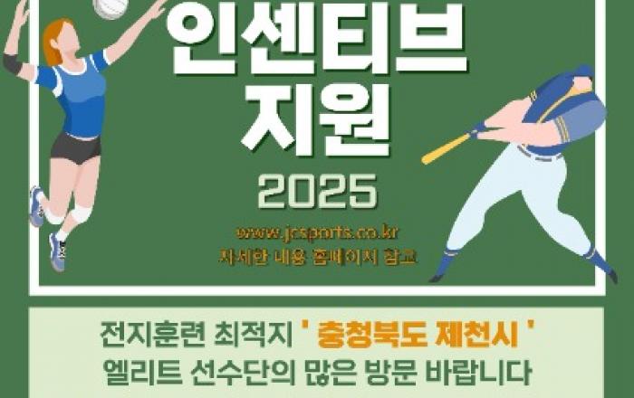 스포츠 중심 도시 제천시(시장 김창규)가 작년에 이어 올해도 전지훈련을 위해 제천을 방문하는 팀들에게 인센티브를 적극적으로 지원한다고 밝혔다.지난해의 경우 4박 5일 이상 체류할 시, 지원이 가능했으나 올해는 다양한 종목과 많은 팀들이 방문할 수 있도록 3박 4일 이상