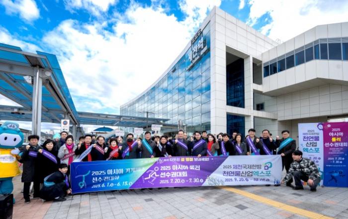 국회의원 시장 등 제천역 귀성객 환영행사 전개제천시가 지난 25일 설 명절 연휴를 맞아 제천역 일원에서 귀성객 환영행사를 전개했다.김창규 제천시장, 박영기 제천시의회 의장, 엄태영 국회의원, 도의원, 시의원 등이 참석한 이번 행사는 제천을 찾는 귀성객에게 따뜻한 환영