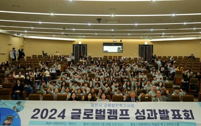글로벌캠프 성과발표회세명대학교와 제천시가 협력하여 추진한 2024년 교육발전특구사업의 일환인 글로벌캠프가 지난 13일부터 24일까지 실시하고, 세명대학교 학술관에서 성과발표회를 실시했다.이번 캠프는 제천시 관내 초등학교 5·6학년 및 중학교 1학년 학생 약 60명을 대