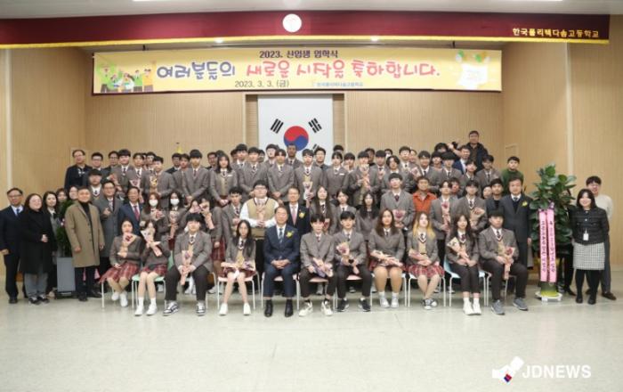 ▲ 한국폴리텍 다솜고등학교 입학식이정식 고용노동부 장관이 3일 충북 제천의 한국폴리텍 다솜고등학교(교장 조상훈, 이하 ‘다솜고’) 2023학년도 입학식에 참석해 다문화 청소년 45명의 새 출발을 격려하였다.이 장관은 “학령기 다문화 청소년에게 공정한 교육 기회를 제공