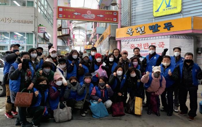 ▲바르게살기운동제천시협의회 장보기 행사 단체사진바르게살기운동제천시협의회(회장 김회원)는 지난 17일 내토동문시장 일원에서 명절맞이 장보기 행사에 동참했다. 이 날 행사는 김회원 협의회장, 박귀녀 여성회장, 박연수 사무국장 등을 비롯해 50여 명의 회원들이 참석한 가