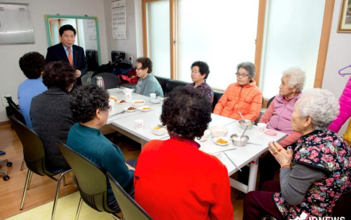 ▲ 경로당 점심제공사업 시범 운영지 방문 김창규 제천시장은 26일 신서부경로당 및 원청전경로당 등 2개소를 방문해 민선8기 공약사업인 ‘경로당 점심 제공사업 지원 확대’시범운영 상황을 점검하고 현장 목소리에 귀를 기울였다. 제천시는 지난 25일 각 읍면동 1