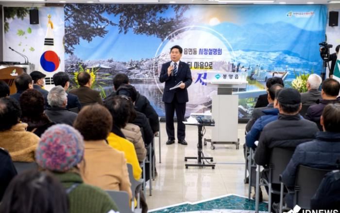 ▲ 김창규 제천시장 시정설명회(봉양읍)제천시는 올 한 해 시정 방향을 공유하고 현장의 목소리를 듣기 위해 ‘2023년도 읍면동 시정설명회’를 진행하고 있다. 시에 따르면 김창규 제천시장은 지난 30일부터 봉양읍 방문을 시작으로 오는 2월 10일까지 17개 읍면동을 모