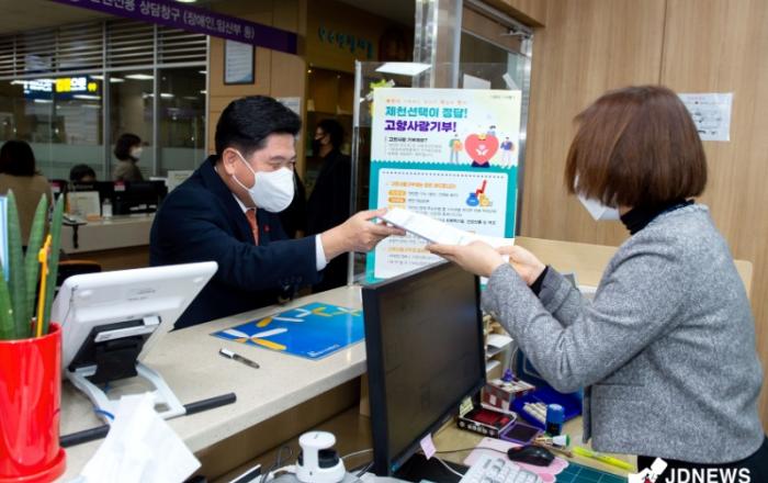 ▲ 고향사랑기부제 자매도시 기탁(김창규 제천시장) 김창규 제천시장이 지난 9일 자매결연을 맺은 서울특별시 서초구 등 17개 자매도시에 고향사랑기부금을 기탁했다. 올해 고향사랑기부제가 시행됨에 따라 김 시장은 고향사랑기부제를 활성화하고 자매도시와 결연관계를 강