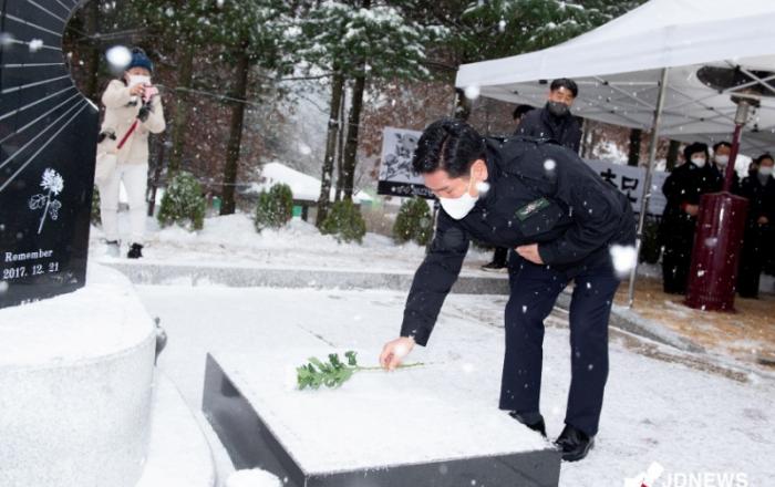 ▲ 제천화재참사 5주기 위령제 개최 제천시는 21일 하소동 화재참사 위령비(하소생활체육공원)에서 ‘제천 화재참사 5주기 위령제’를 진행했다.제천화재참사유족회에서 주관한 이번 위령제는 김창규 제천시장을 비롯한 내빈 및 유가족, 주민 등 80여명이 참석한 가운데 제천 화재