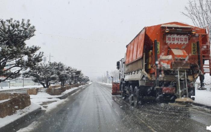 ▲ 제설작업 현장사진제천시는 ‘대설주의보 및 한파주의보’등 기상특보 발효에 따라 관내 도로 제설 및 보행자 안전관리에 총력을 기울이고 있다. 21일 오후 2시 기준 6cm의 적설로 충북도내 최대 적설량을 기록한 가운데, 시는 예보에 따라 이날 오전 5시부터 비상근무를