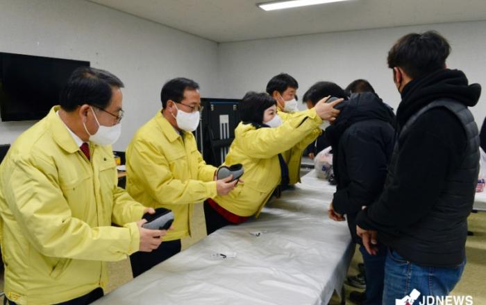 ▲제천시의회, 환경미화원 대기소 격려 방문제천시의회(의장 이정임)는 의장단은 지난 23일 신월동에 위치한 환경미화원 대기소에 방문해 환경미화원 근무자를 격려했다. 이날 오후 대기소에 방문한 의장단은 근무자들에게 귀마개와 간식을 전달하고, 겨울철 근무여건과 관련해 근