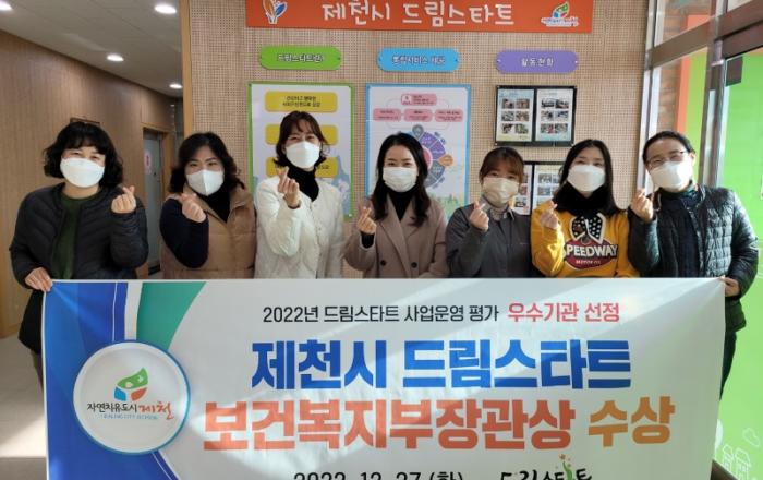 ▲제천시 드림스타트 2022 우수기관 선정 제천시 드림스타트는 보건복지부에서 주관한 ‘2022년도 드림스타트 사업운영 평가’에서 우수기관으로 선정돼 장관상을 수상한다고 27일 밝혔다. 이로써 시는 2016년도 2018년도에 이어 세 번째로 선정되며, 취약계층