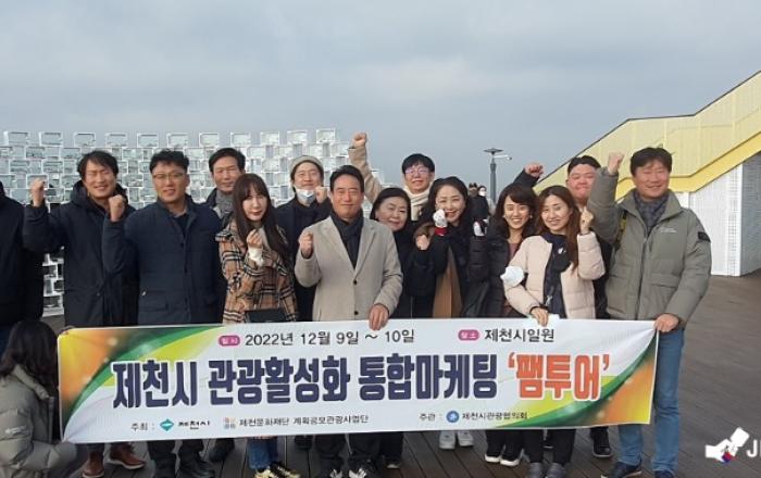 ▲계획공모사업단 3차 팸투어 단체사진제천시와 계획공모 관광사업단(단장 박준범)은 지난 9일~10일 이틀에 걸쳐 제천시 전역에서 관광전문가, 교수진 20여명과 3차 팸투어를 진행했다. 3회째 진행되는 이번 팸투어에는 한양여대를 비롯한 전국 11개 대학 및 한국관광공사를