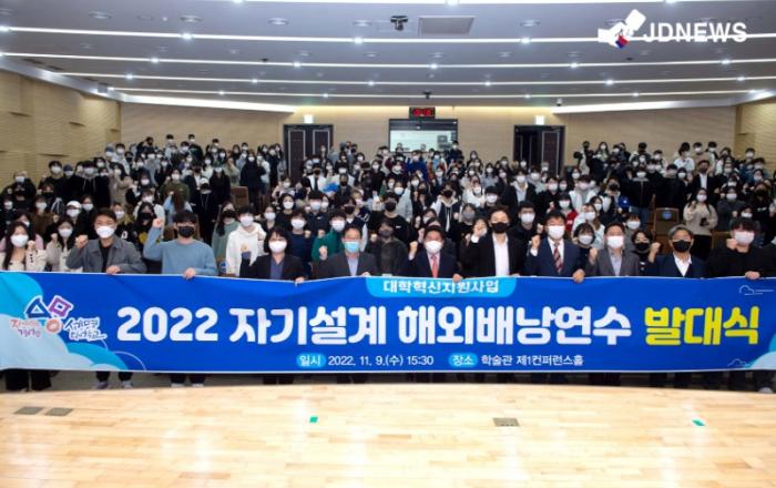 ▲세명대 해외배낭연수 발대식 단체사진 세명대학교(총장 권동현)는 지난 9일 세명대 학술관에서 ‘2022년 대학생 해외배낭연수 발대식’을 개최했다. 김창규 제천시장, 권동현 세명대 총장 등 내빈과 참가학생 등 300여명이 참석한 가운데 진행한 이날 발대식은, 시정접목