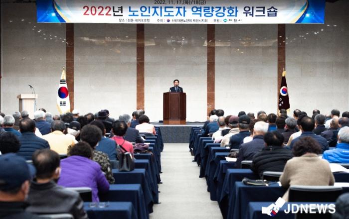 ▲ 대한노인회 제천시지회 노인지도자 역량강화 워크숍 개최 대한노인회 제천시지회(지회장 최동수)는 17일부터 18일까지 양일간 청풍리조트 레이크호텔에서 노인지도자 역량강화를 위한 워크숍을 개최한다. 17일 개회식은 김창규 제천시장 및 최동수 지회장 등 내빈