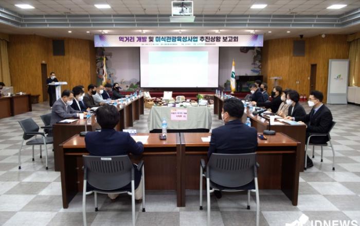 ▲ 제천시 먹거리 개발 및 미식관광 육성사업 추진상황 보고회 개최 제천시는 지난 1일 제천시청 청풍호실에서 ‘먹거리 개발 및 미식관광 육성사업 추진상황 보고회’를 개최했다. 제천문화재단 계획공모관광사업단 주관으로 추진된 이번 보고회는 김창규 제천시장을 비롯한 20여