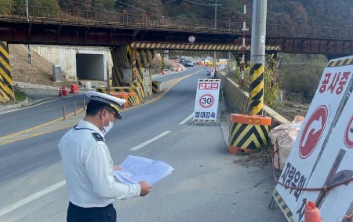 ▲ 도로공사 안전점검제천경찰서(서장 송해영)는 2일 봉양읍 원박리 원박교 도로확장공사 현장 등 7개소 주요공사현장에 대해 교통사고 예방을 위한 안전점검을 실시하였다. 이번 교통 안전점검은 최근 청주권에서 연이어 발생한 도로공사장 작업자 사망사고 발생에 따른 추가 사고