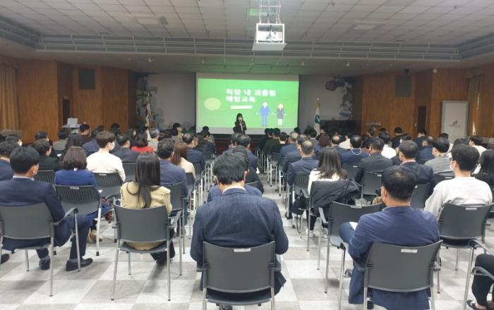 ▲ 직장내 괴롭힘 예방교육제천시는 지난 2일 제천시청에서 “2022년 직장 내 괴롭힘 예방교육”을 진행했다. 소속 공직자의 안전한 근무환경 조성과 건전한 조직문화 육성을 위해 실시한 이번 교육은, 각 간부공무원 및 신규직원 등 100여명이 참석한 가운데 직장 내 괴롭