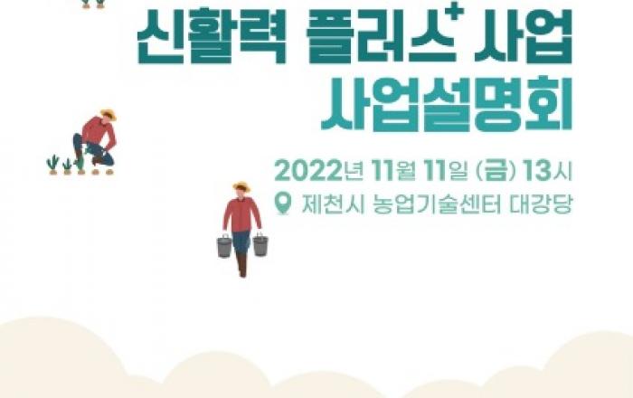 ▲ 농촌신활력플러스 사업설명회 포스터제천시는 오는 11일 오후 1시 제천시 농업기술센터 1층(농업인교육장)에서 '농촌신활력플러스 사업설명회 및 특강' 을 개최한다. 농촌신활력플러스사업은 지역에 다양한 유무형의 자원과 민간조직을 활용해 특화산업 육성, 공동