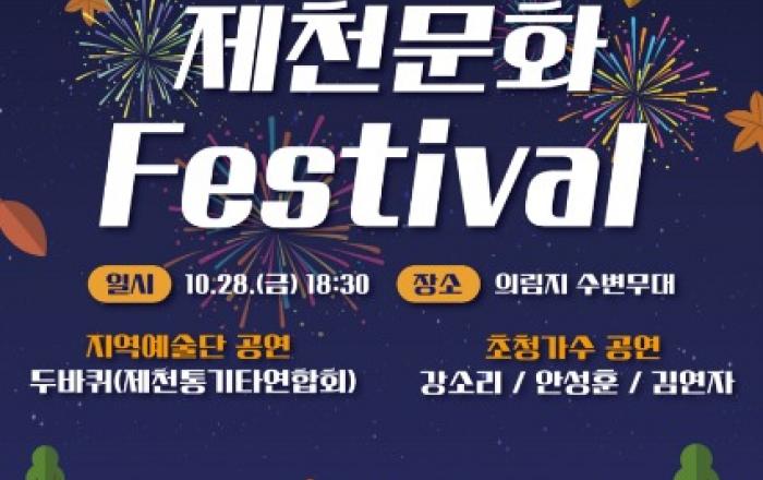 ▲ 제42회 제천문화페스티벌 포스터‘제42회 제천문화페스티벌’이 오는 28일 오후 6시 30분 의림지 수변무대에서 개최된다. 제천시와 세명대학교가 주최하는 이번행사는 코로나 19로 목마른 지역민의 문화갈증을 해소할 지역 축제로, ▲지역예술인 두바퀴(제천통기타연합회