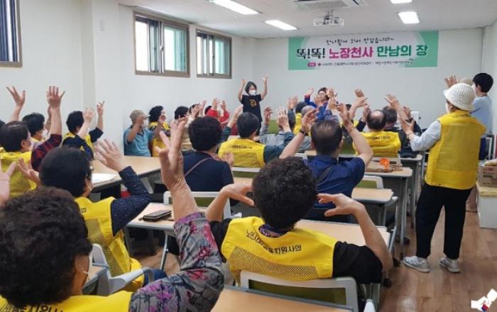 ▲ 제천형노인일자리 똑똑노장천사 만남의장제천시는 지난 24일 ‘2023년 신규 노인일자리 아이템 개발을 위한 공모전’에서 우수상을 수상했다. 한국노인인력개발원 주관으로 진행된 위 공모전에서 시는 제천형 노인일자리 사업의 일환으로 추진 중인 “똑! 똑! 노-장천사”를