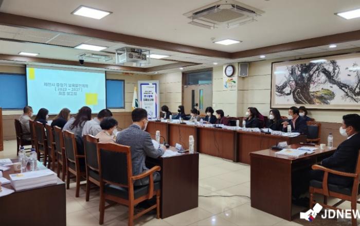 ▲ 제천시 2023_2027 중장기 보육 발전계획 연구용역 최종보고회제천시는 최근 제천시 중장기 보육발전계획 연구용역 최종보고회를 갖고 “2023~2027 중장기 보육발전 계획”을 수립했다. 김창규 제천시장 주재 하에 개최된 최종보고회는 지난 21일 시청에서 개최되