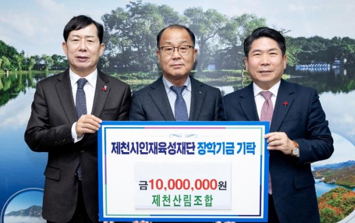 제천산림조합 장학금 1천만 원 기탁제천산림조합는 지난 14일 제천시 인재육성재단에 지역인재양성을 위해 써 달라며 장학금 1천만 원을 기탁했다.이 조합은 2008년부터 매년 성금 및 장학금을 제천시 및 인재육성재단에 기부해 현재 누적 기탁금액 1억 4천만 원으로 제천의