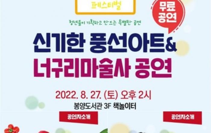 ▲ 동네방네 페스티벌 홍보물제천봉양도서관이 지역청년공동체 ‘유스토피아’와 함께 동네방네 페스티벌을 개최한다.동네방네 페스티벌은 행정안전부와 충청북도가 주관하는 ‘2022 청년 공동체 활성화 사업’의 일환으로, 지역에서 활동하는 청년공동체가 다양한 공동체 활동을 통해 청