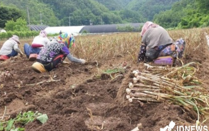 ▲ 지속된 이상기상으로 단양 마늘재배 농가들이 생육 장해 및 생산량이 감소하면서 극심한 피해를 호소하고 있다. 충북 단양군 마늘 생산 농가들이 이상기상 여파와 최근 긴 가뭄까지 겹치면서 마늘 생육불량의 문제로 마늘 상품성과 생산량이 떨어지면서 마늘 가격이 대폭상승할