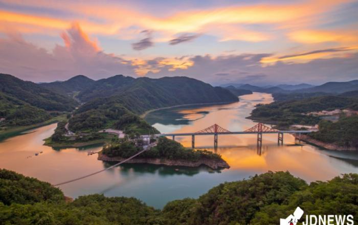 ▲ 제천시 관광지 옥순봉 출렁다리 전경한국웰빙문화관광협회(회장 이정환)가 주관한 제1회 한국문화관광대상에서 충북 제천시가 마케팅분야 우수 지자체에 선정됐다고 15일 밝혔다.지난 2021년 12월 10일 전국 226개 지자체를 대상으로 실시한 제1회 한국문화관광