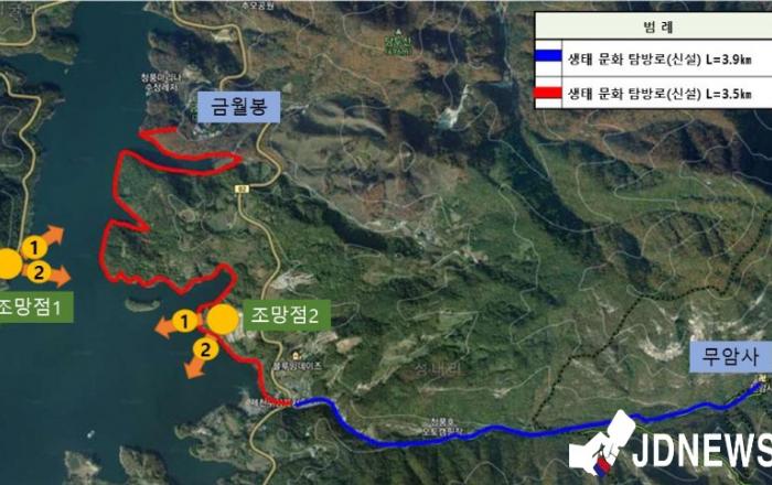 ▲ 국가생태문화탐방로 조성구간 모습충북 제천시가 환경부 주관 ‘국가생태문화탐방로 조성’ 공모사업에 최종 선정됐다고 1일 밝혔다.국가생태문화탐방로는 그 지역의 자연과 문화, 역사를 체험할 수 있도록 생태 탐방 네트워크를 구축하는 사업으로, 천혜의 자연환경을 가지고 있는