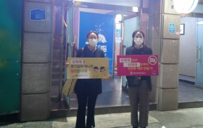 ▲ 성매매 근절캠페인 모습충북 제천시는 성매매 없는 지역사회를 만들기 위한 성매매 인식 실태조사를 실시하고 조사 결과를 바탕으로 근절캠페인을 진행했다고 27일 밝혔다. 이번 조사는 제천시 양성평등기금사업의 일환으로 제천성폭력상담소에서 지난 9월 한 달 간 시