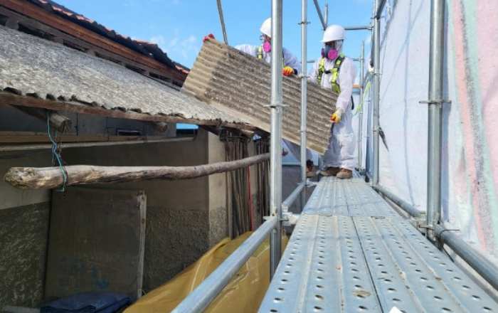 ▲ 슬레이트 철거 모습충북 제천시는 국고보조사업으로 진행 중인 슬레이트 철거·처리지원사업과 관련해 잔여 47여개 동을 예산소진 시까지 추가 모집한다고 15일 밝혔다. 제천시는 70년대 초 지붕재로 집중 보급됐던 석면슬레이트의 노후화로 인해 석면비산에 따른 국민 건강피해