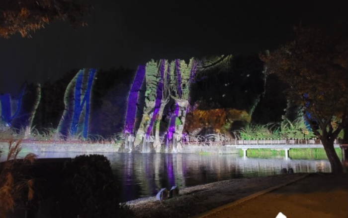 충북 제천시는 의림지 인공폭포 미디어 파사드 조성을 완료하고 시민들에게 선보였다.17일 제천시에 따르면 미디어 파사드는 건물외벽을 뜻하는 '파사드(Facade)'와 '미디어(Media)'의 합성어로 건물외벽 배경에 영상을 투사해 시각적 아름다움과 정보를 전달하는 수단이