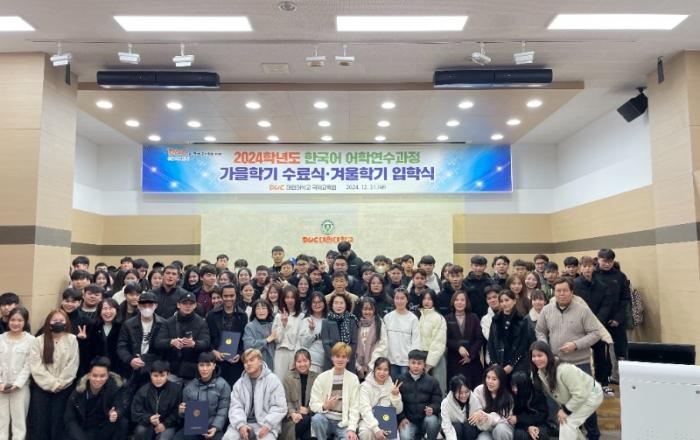 어학과정 수료생 및 입학생대원대학교 국제교육원은 지난 2024년 12월 31일(화) '2024학년도 한국어 어학연수과정 가을학기 수료식 및 겨울학기 입학식'을 개최했다.이번 행사에는 베트남, 우즈베키스탄, 스리랑카, 미얀마 등 다양한 국가에서 온 어학연수생 200여