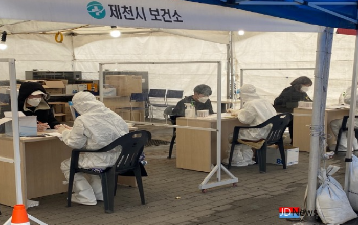 ▲ 제천시 보건소 선별진료소 모습JD News 유소진 기자 = 충북 제천시에서 신종 코로나바이러스 감염증(코로나19)추가 확진자 10명이 나오면서 방역당국에 비상이 걸렸다. 전날(8일)검체검사자 811건 중 9일 오전 8시경 확진판정을 받은 신규확진자 7명 중 일가족
