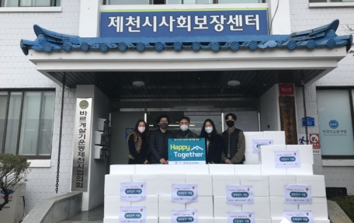 ▲ 제천시지역사회보장협의체가 각 읍·면·동 지역사회보장협의체에 김장김치를 지원했다.JD News 유소진 기자 = 충북 제천시 지역사회보장협의체는 지난 10일 저소득가정지원 ‘Happy Together’ 사업을 통해 17개 읍·면·동 지역사회보장협의체에