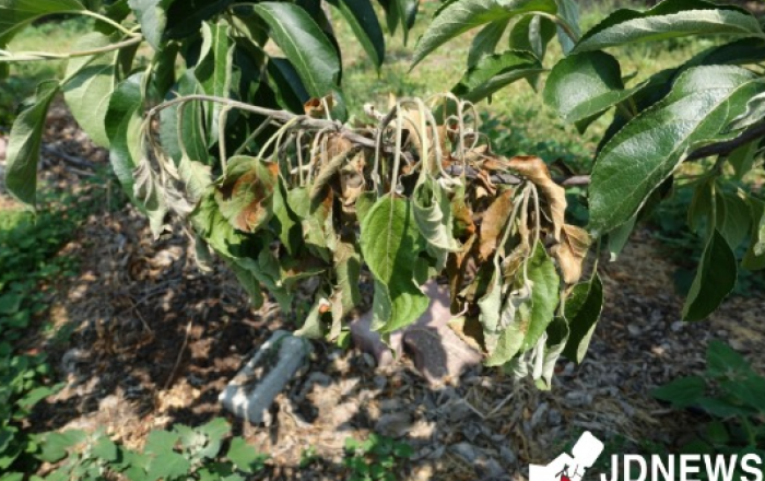 ▲ 과수화상병 모습 JD News 유소진 기자 = 충북 제천시는 과수화상병의 확산을 막기 위해 내년에 사용 할 예방 약제를 무상 공급할 계획으로, 이에 사과·배 재배 농가를 대상으로 사전 신청을 받는다고 27일 밝혔다. 신청은 11월 19일까지 읍·면·동