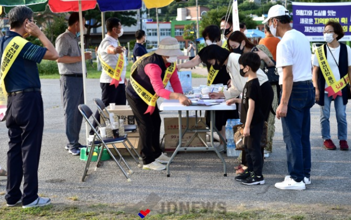 ▲ 제천비행장 찾기 범시민 서명 운동하는 모습JD News 유소진 기자 = 국방부 소유인 충북 제천비행장의 군사목적으로의 항구적 사용 중지 및 시민의 품으로 반환받기 위한 범시민 참여 분위기 조성과 함께 단합된 의지를 관계기관에 전달하기 위해 시작 된 범시민 서명운동이