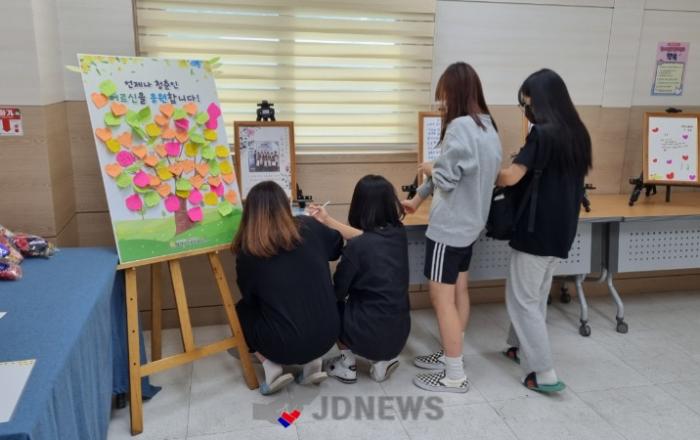 ▲ 로고라이트 설치 된 모습JD News 유소진 기자 = 제천시 보건소와 정신건강복지센터가 의림지 일원과 삼한의 초록길 일원에 생명존중문화 확산을 위한 로고라이트를 설치했다. 23일 제천시에 따르면 시민들이 많이 이용하는 산책로에 로고라이트를 이용하여 '오늘 참 힘들었