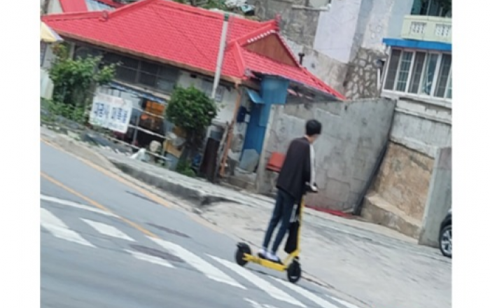 ▲ 제천시 세명대학교 입구에 공유 전동 킥보드가 놓여 있으나 안전모는 비치되지 않았다.JD News 유소진 기자 = 공유 전동 킥보드에 대한 도로교통법이 강화된 가운데 일선 킥보드 운영 업체들이 안전모를 갖춰놓지 않고 있어 이용자들이 위험에 그대로 노출되고 있다.현재