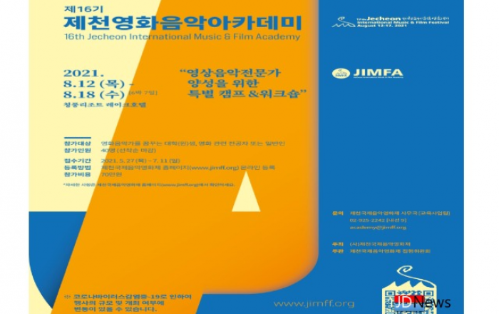 ▲ 제 16기 제천영화음악아카데미 포스터JD News 유소진 기자 = 제천국제음악영화제가 오늘 27일부터 ‘제16기 제천영화음악아카데미(JIMFA)’ 모집을 시작한다고 밝혔다.2006년 제천국제음악영화제에서 제1기를 시작으로 올해 제16기를 맞이한 제천영화음악아카데미가