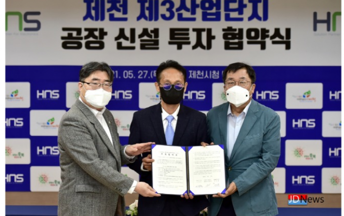 ▲ 제천시 이상천시장과 ㈜에이치앤에스 대표와 투자협약을 체결했다. JD News 유소진 기자 = 27일 제천시는 소재 부품 제조기업인 ㈜에이치앤에스와 제천 제3산업단지로 본사 이전과 신사업 투자를 위한 대규모 투자협약을 체결했다고 밝혔다.특히, 이번 협약은 충