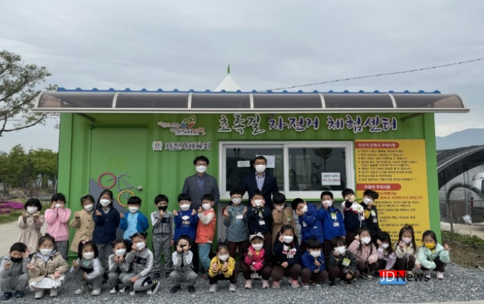 ▲ 이상천 제천시장과 체육회장이 어린이날을 앞두고 초록길 자전거 체험센터를 찾았다.JD News 유소진 기자 = 이상천 제천시장과 제천시 체육회장은 어린이날을 하루 앞둔 4일 삼한의 초록길 탐방로를 찾아, 제천시체육회 주관으로 진행되고 있는 어린이 자전거 교실을 점검해