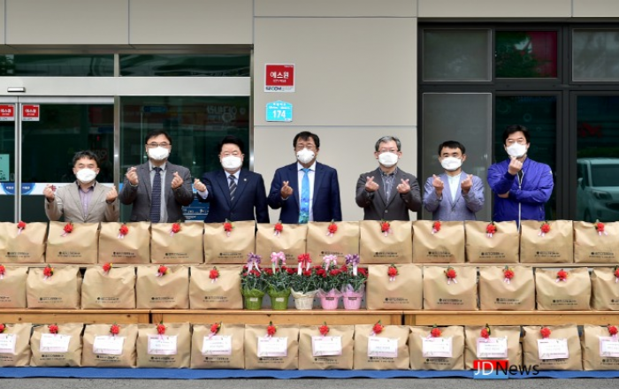 ▲ 제천시 노인종합복지관에 지역단체들과 이상천 제천시장 등 참여해 어른신들께 효 나눔 선물 꾸러미를 전달했다. JD News 유소진 기자 = 제천시 노인종합복지관(관장 박재홍)에 따르면 지난 6일 어버이날을 맞아 지역 단체와 함께하는 어버이날 효 나눔 행사를