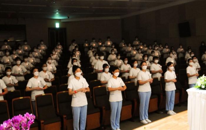(제천=Jd News) 이용희 기자 = 세명대학교(총장 이용걸) 간호학과(학과장 황선아)가 11월 12일 제25회 나이팅게일 선서식을 학술관 대세미나실에서 거행했다. 이날 선서식은 COVID-19 상황을 고려하여 간호학과 교수진과 선서생 등 최소인원만 참석한