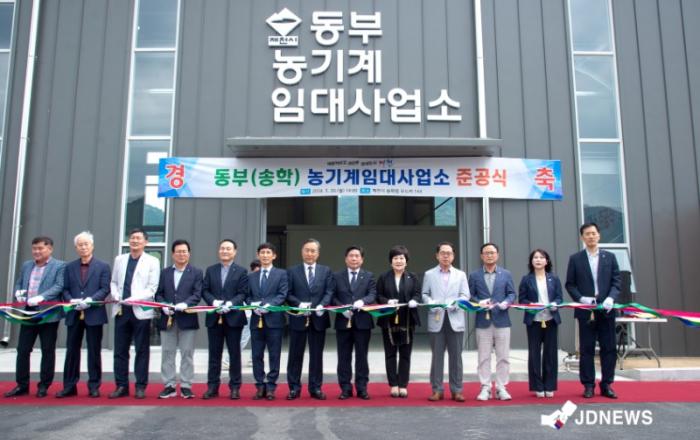 농기계임대사업소 준공식 사진제천시는 20일 송학면 무도리 일원(동부 농기계임대사업소 부지)에서 동부(송학) 농기계임대사업소 준공식을 개최했다.이날 준공식에는 김창규 제천시장과 이정임 제천시의회의장, 김꽃임 충청북도의원, 제천시의회의원, 농업인 단체장, 송학면 주민 등