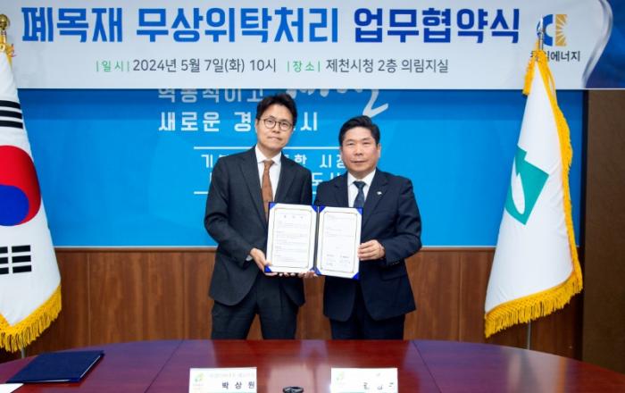 제천시는 (주)천일에너지(대표이사 박상원)와 자원관리센터 폐목재 무상위탁처리 업무협약을 체결했다. 이번 협약은 매년 생활폐기물 양이 증가하는 가운데, 폐기물의 자원순환과 처리비용의 절감을 위해 시와 업체가 손을 맞잡은 것이다.협약에 따라 2025년부터 자원관리센터에