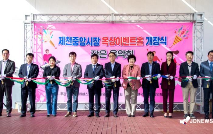 옥상무대 개장식제천문화재단 상권르네상스사업단(단장 홍석종)은 중앙시장 옥상의 유휴공간을 활용하여 옥상무대 및 고객 쉼터 공간을 조성하고 지난 18일 개장식을 진행했다.이날 김창규 제천시장, 이정임 제천시의회 의장 등이 참석해 옥상무대 개장을 함께 축하해 주었으며, 제천