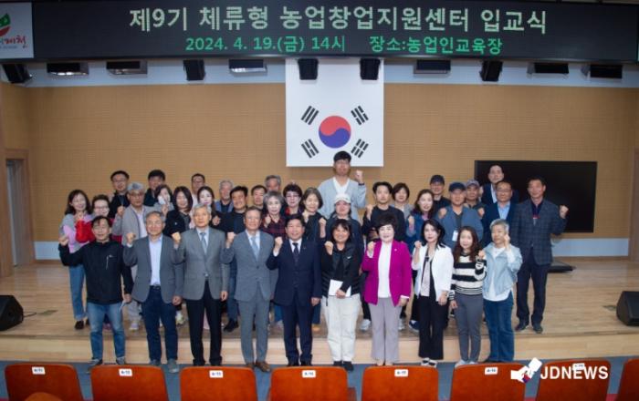 농업창업지원센터 입교식제천시(시장 김창규)는 19일 제천시 농업기술센터 농업인 교육장에서 도시민 30세대를 대상으로 입교식을 개최하고 본격적인 운영을 시작했다.2016년 전국 최초로 운영해 2024년 올해 9년째를 맞이한 제천 체류형 농업창업지원센터는 기숙사 6동, 1