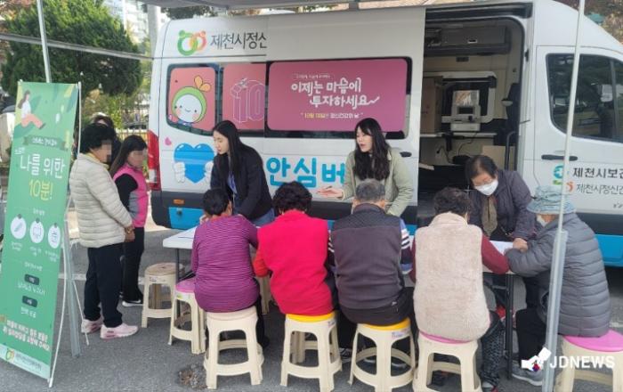 마음안심버스(정신건강 선별검사 중)제천시보건소(소장 이운식)는 정신건강복지센터와 협력·운영하고 있는 찾아가는 ‘마음안심버스’ 사업을 확대한다고 22일 밝혔다.마음안심버스는 2023년부터 시작한 사업으로 시민이 손쉽게 서비스를 제공받을 수 있도록 차량 내에서 스트레스 검