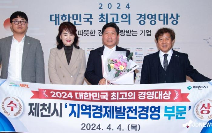 대한민국 최고의 경영대상 수상제천시(시장 김창규)가 4일 서울 더 플라자 호텔에서 진행된 ‘2024년 제9회 대한민국 최고의 경영대상’지역경제발전경영 부분에서 대상을 수상했다.매경미디어그룹에서 주최한 대한민국 최고의 경영대상은 뛰어난 경영전략과 과감한 도전으로 각 분야