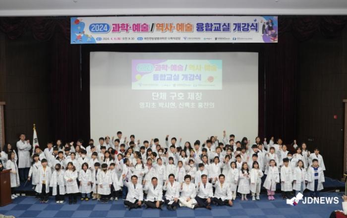 과학예술융합교실제천시인재육성재단(이사장 지중현)이 지난 6일 제천한방생명과학관 다목적강당에서『2024년 과학․예술 융합교실과 역사예술 융합교실 합동 개강식』을 가졌다.이 행사에 지중현 이사장과 김창규 제천시장, 이정임 제천시의회 의장, 강성권 제천교육지원청 교육장을 비